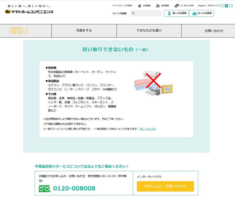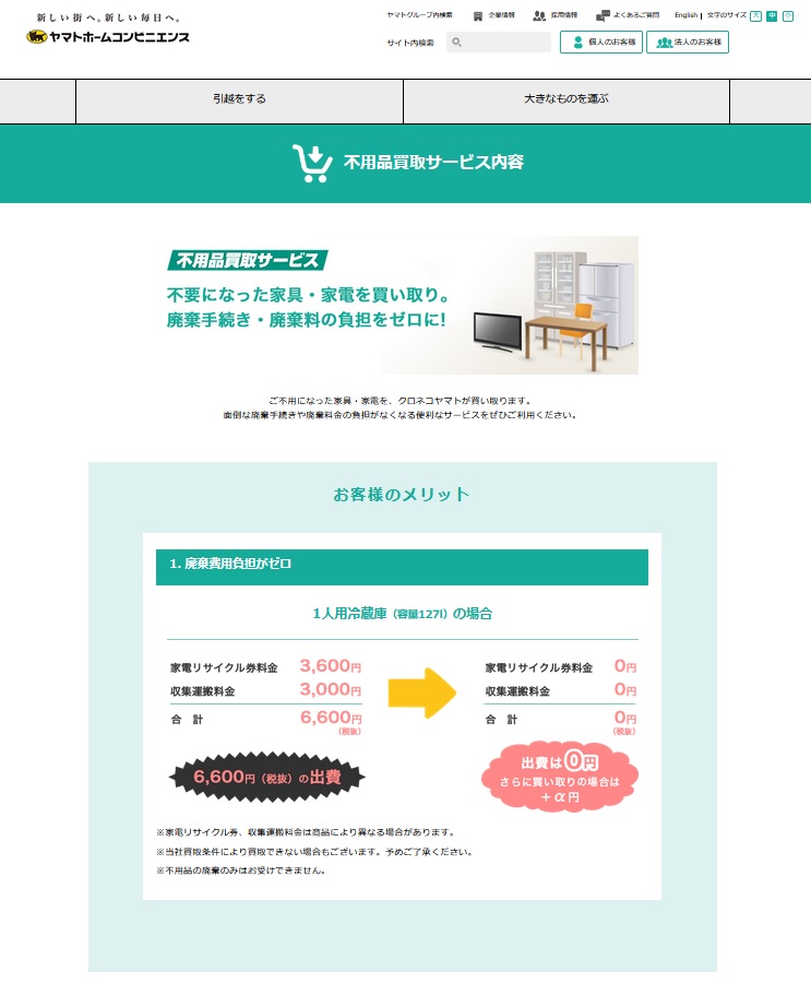 ヤマトホームコンビニエンスの「不用品買取サービス」では、