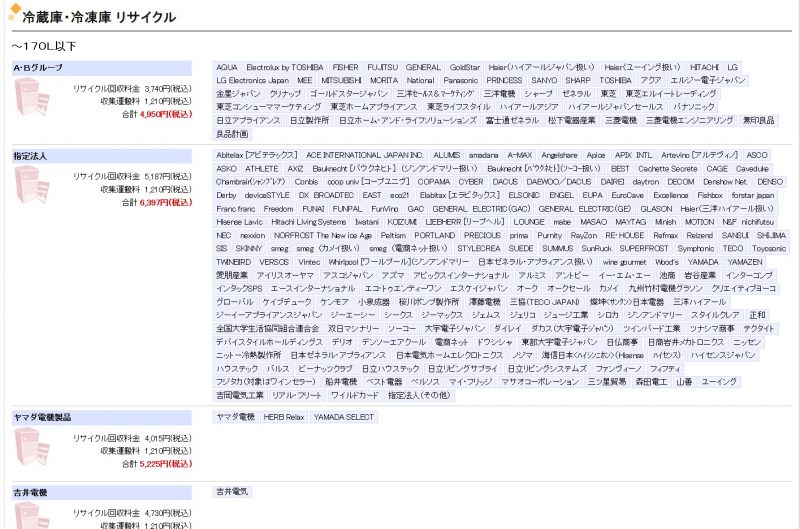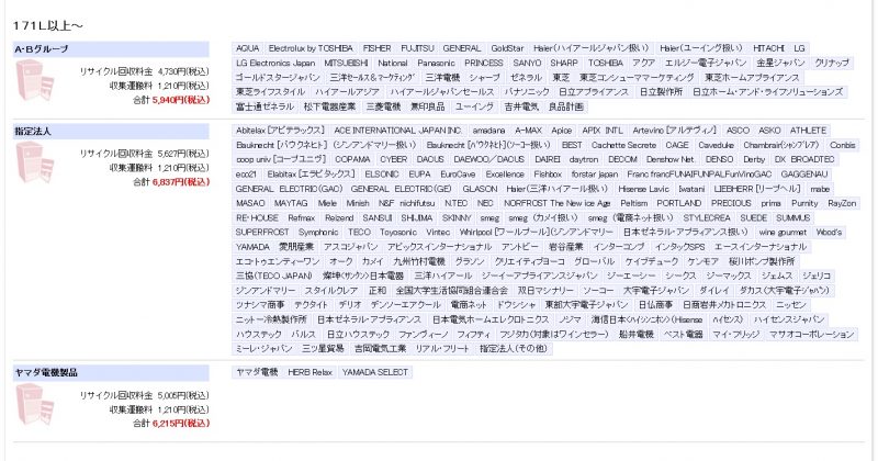 他社の場合は、備考欄などに、『メーカーによってはリサイクル料金が異なる場合がある』という程度しか記載がなされていません。しかし、実質的にはどちらも同じと考えていいでしょう。
