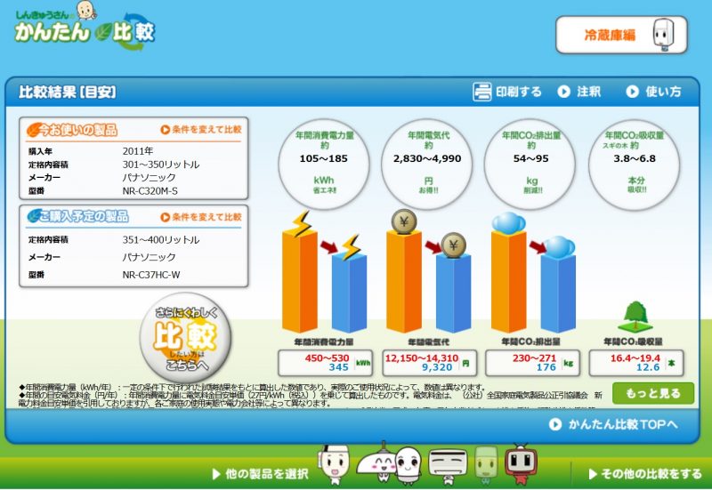 経済産業省が運営している「省エネ製品買換ナビゲーション-しんきゅうさん」というサイトが便利です。