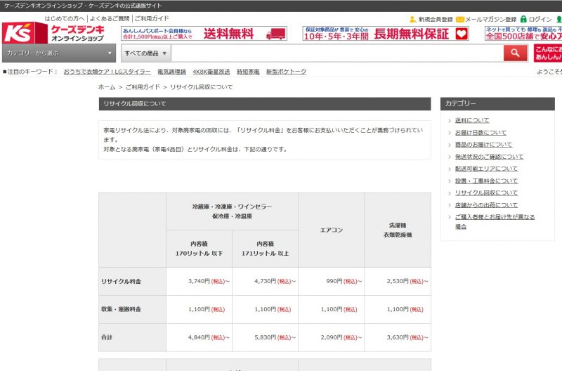 参考及び画像引用元:ケーズデンキオンラインショップ-リサイクル回収について